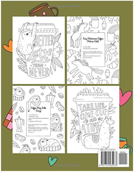Y si la persona a regalar en más de café, no te preocupes que he aquí la solución: el cuaderno de pintura de relajación con frases sobre café y sencillas recetas.